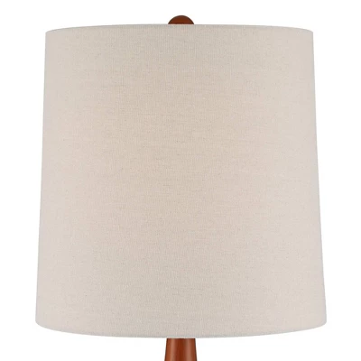 Update your decor into the modern age with this Mid-Century table lamp design from the 360 Lighting brand. The Andi lamp features a playful profile in wood and green ceramic. The ceramic is hand glazed, resulting in a wonderful play of color tones. A tall tapered white fabric drum shade completes the look on top.