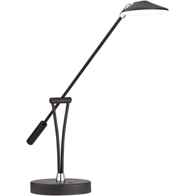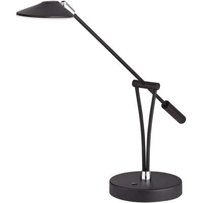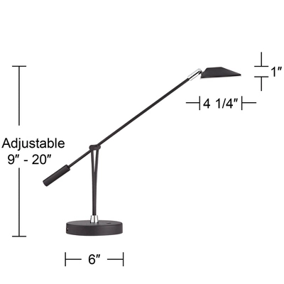 Brighten your study space with this set of two modern LED desk lamps from 360 Lighting. Each metal desk lamp delivers a black finish for a contemporary look, with subtle chrome accenting for extra shine. Two USB ports and a push dimmer switch are built into each base. The adjustable arms move up and down, allowing you to adjust the overall height of these lamps.