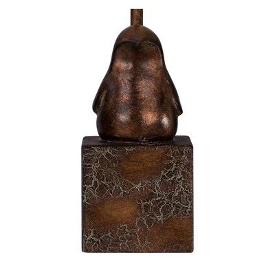 Add a sculptural element to your decor with this small accent table lamp, which features the delightful profile of a bird. The contemporary sculptural bird in a bronze-brown finish sits on a cube base with a crackled duo-tone finish. A burlap drum shade lends a natural touch to this modern design with an organic look.