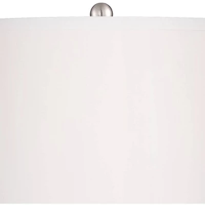 - White drum lamp shade with finial.