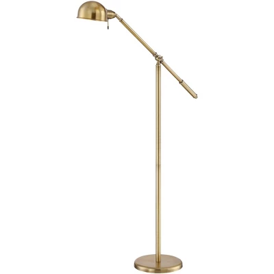 Upgrade the lighting in your space with these classic pharmacy floor lamps. The low-profile design in an antique brass finish has a boom-style arm that can be adjusted to cast light at a variety of angles. A sleek metal shade creates ample downward illumination in your space.