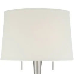 Create the living space of your dreams with the Dyna floor lamp, from the 360 Lighting brand. Perfect for homes blending contemporary and industrial styles, this floor lamp comes with a taupe burlap drum shade. Twin pull-chains easily operate two bulbs, bringing welcome illumination to your home.
