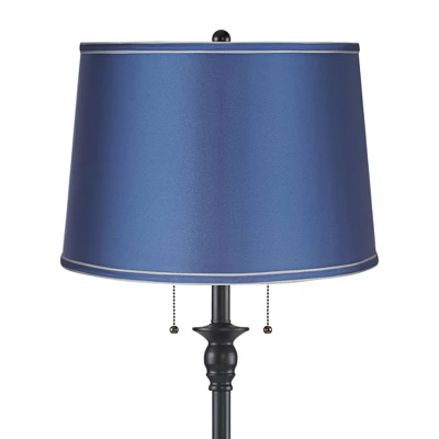 Create the living space of your dreams with the Dyna floor lamp, from the 360 Lighting brand. Perfect for homes blending contemporary and industrial styles, this floor lamp comes with a royal blue fabric drum shade with silver trim and lining. Twin pull-chains easily operate two bulbs, bringing welcome illumination to your home.