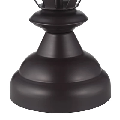 Add style with this set of open cage table lamps from the 360 Lighting brand. The lamps feature an open curving frame made up of strips of metal that form a convex shape, with a bronze finish to give it a stylish look. Topped by a taupe drum shade for that perfect finishing touch.