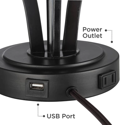 360 Lighting Heather Modern Accent Table Lamps Set Of 2 With Round Risers 22 1/2″ High Iron USB And AC Power Outlet In Base Off White Glass For Desk