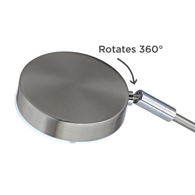 Bring modern, functional lighting style to your workspace with this set of two adjustable LED desk lamps. An ultra handsome design offers a lustrous satin nickel finish with balance arms and a 360-degree rotating head that makes it easy to adjust the light direction. 4500K color temperature provides a bright white light, and five watts of LEDs add energy-efficient illumination for reading and other tasks.