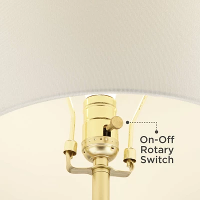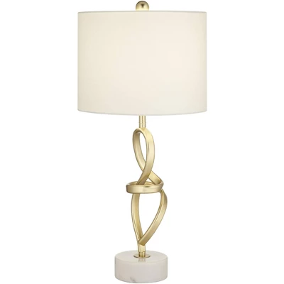Add style to a living room or your bedside tables with this table lamps set by 360 Lighting. The lamps have a modern, open-look with a knotted figure-8 loop profile. The bases are in a brushed gold finish and the round marble bases provide additional glam. Up top are white linen fabric lamp shades.