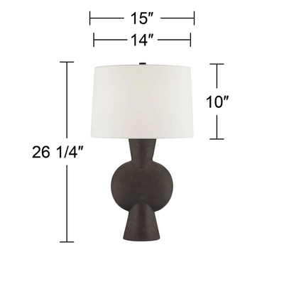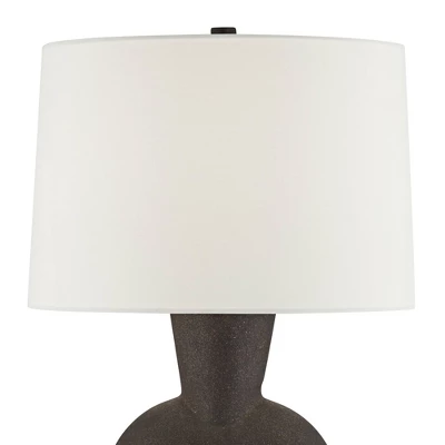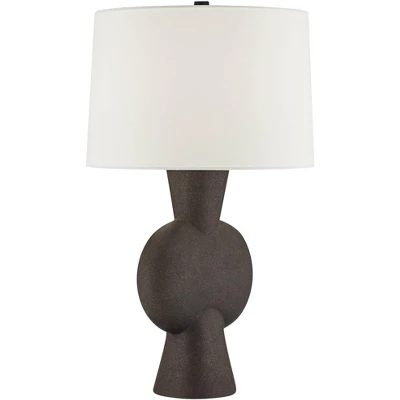 Take your decor up a notch with the engaging design of this modern gourd table lamp by 360 Lighting. A rustic matte brown finish adds contrast to the design, which boasts a shapely body with geometric design elements. A tapering drum wrapped in white linen creates wonderful lighting, perfect for a family room or home office.