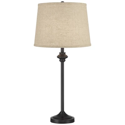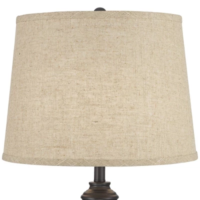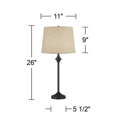 From the 360 Lighting brand, these contemporary table lamps are a wonderful addition to a lengthy table or on separate nightstands flanking a larger piece of furniture. Each lamp comes in a smooth black finish for a classic handsome look and is topped by a burlap linen drum shade with a round finial. Simple and stylish, these buffet table lamps will provide a coordinating look for your living space.