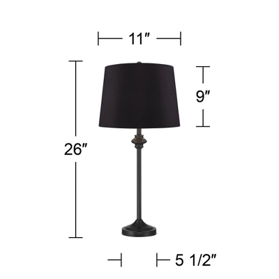 From the 360 Lighting brand, these contemporary table lamps are a wonderful addition to a lengthy table or on separate nightstands flanking a larger piece of furniture. Each lamp comes in a smooth black finish for a classic handsome look and is topped by a black drum shade with a round finial. Simple and stylish, these buffet table lamps will provide a coordinating look for your living space.