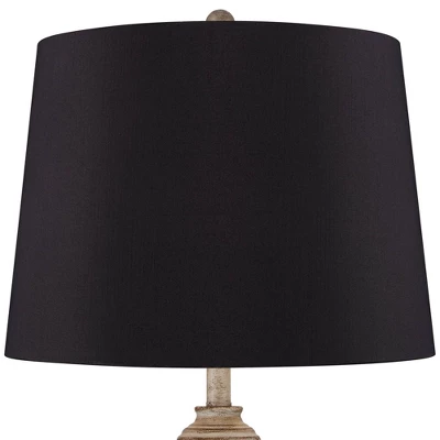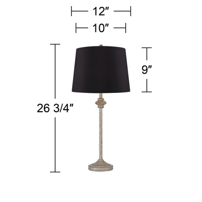 From the 360 Lighting brand, these country cottage table lamps are a wonderful addition to a lengthy table or on separate nightstands flanking a larger piece of furniture. Each lamp comes in a light beige wood finish for a gentle natural look and is topped by a black faux silk drum shade with a round finial. Simple and stylish, these buffet table lamps will provide a coordinating look for your living space.