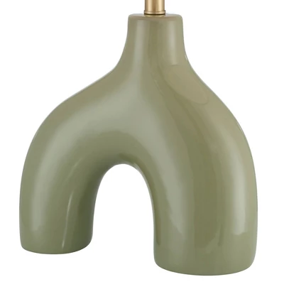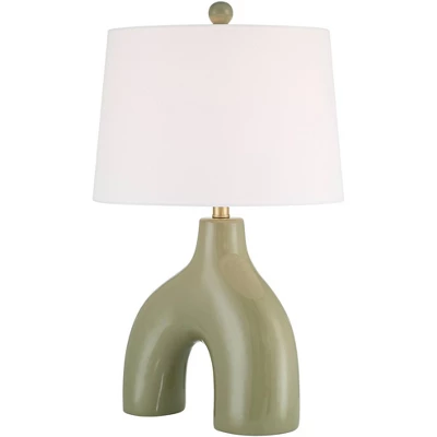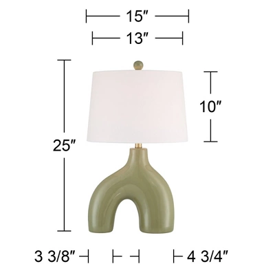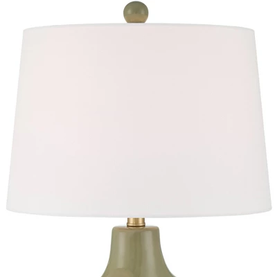360 Lighting Lyrah 25″ High Mid Century Modern Table Lamp Green Glaze Finish Ceramic Single White Shade Living Room Bedroom Bedside Nightstand House