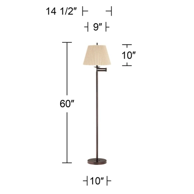 Brighten up with this handsome swing arm floor lamp from the 360 Lighting brand. Ideal when used next to a sofa or arm chair, this swing arm floor lamp adjusts to position light just where you need it. The design comes in a classic bronze finish with a swing arm at the top and an on-off socket switch. It’s topped with a classic beige fabric pleated lamp shade.