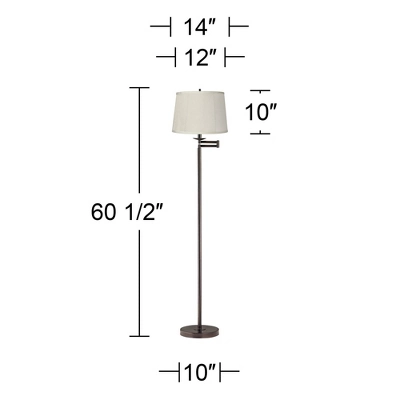 Perfect next to a sofa or armchair, this swing arm floor lamp adjusts to position light just where you need it. The design comes in a classic bronze finish with a swing arm at the top and an on/off socket switch. Its topped with an elegant beige fabric drum shade for added style. A modern look from the 360 Lighting brand.