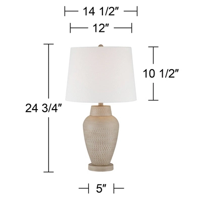 Versatile yet beautiful, the design of this set of two metal table lamps from the 360 Lighting brand boasts a beautiful vase silhouette. Hammered metal is coated with a neutral beige finish and each lamp is elegantly topped with a white linen shade. Choose this classic design in lamps as a great way to add lighting and style to a deserving tabletop.