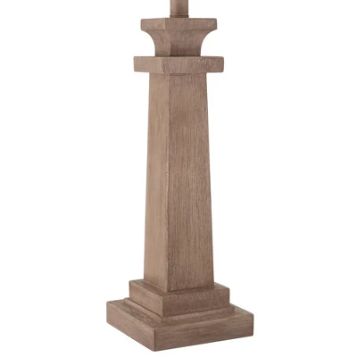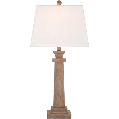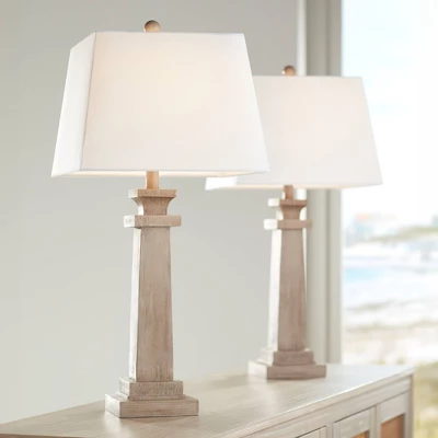 Classic in style but modern in functionality, this set of lamps from the 360 Lighting brand features traditional rustic appeal along with built-in USB charge ports. Use the USB ports to plug in and charge-up phones and other devices so they are ready to use. The lamps come in a rustic faux wood grain finish and are topped with tapered rectangular white fabric lamp shades.