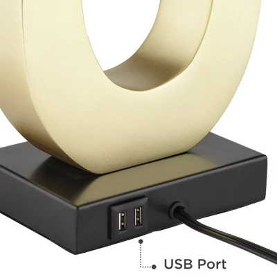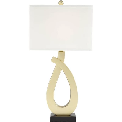 360 Lighting Simone Modern Table Lamps 28″ Tall Set Of 2 Gold Metal With USB Charging Port White Rectangular Shade For Bedroom Living Room Nightstand