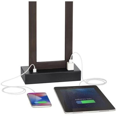 360 Lighting Todd Modern Table Lamp 30″ Tall Bronze Rectangular With USB And AC Power Outlet In Base Oatmeal Fabric Shade For Living Room Office House